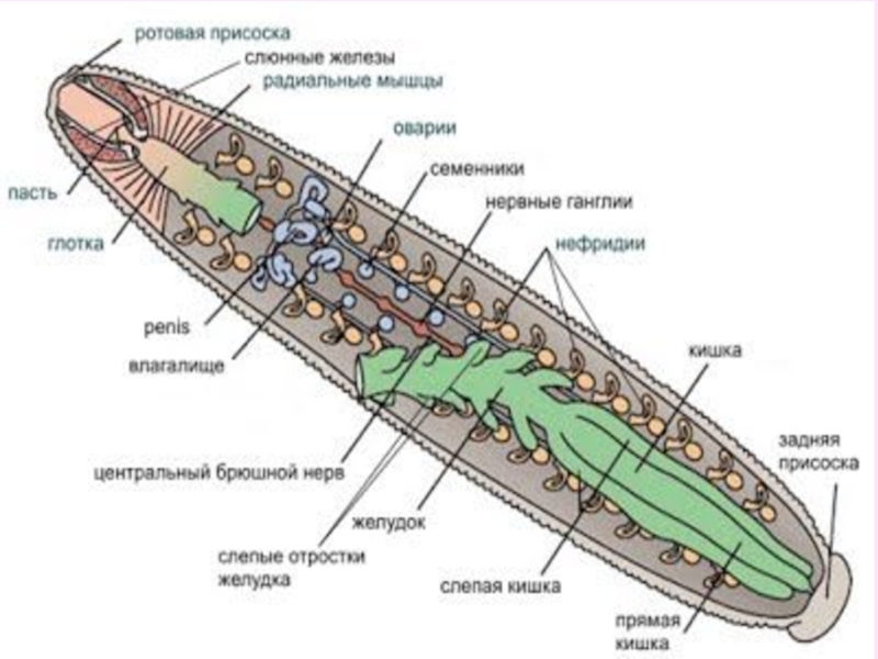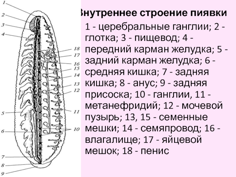 Слайд 11Внутреннее строение пиявки