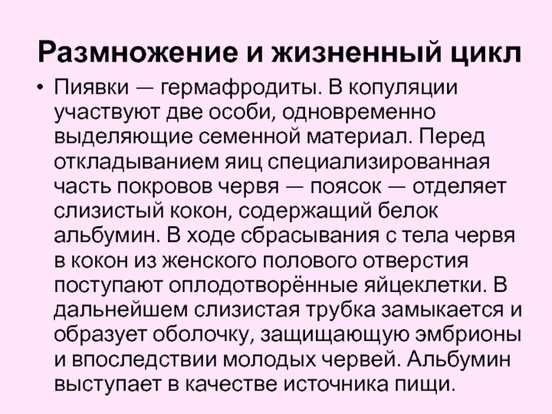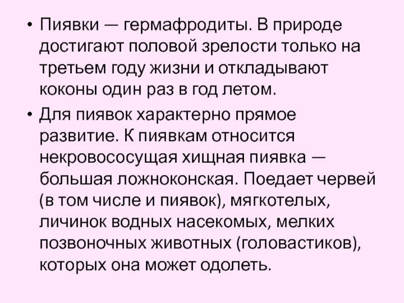 Слайд 7Пиявки — гермафродиты. В природе достигают половой зрелости только на третьем
