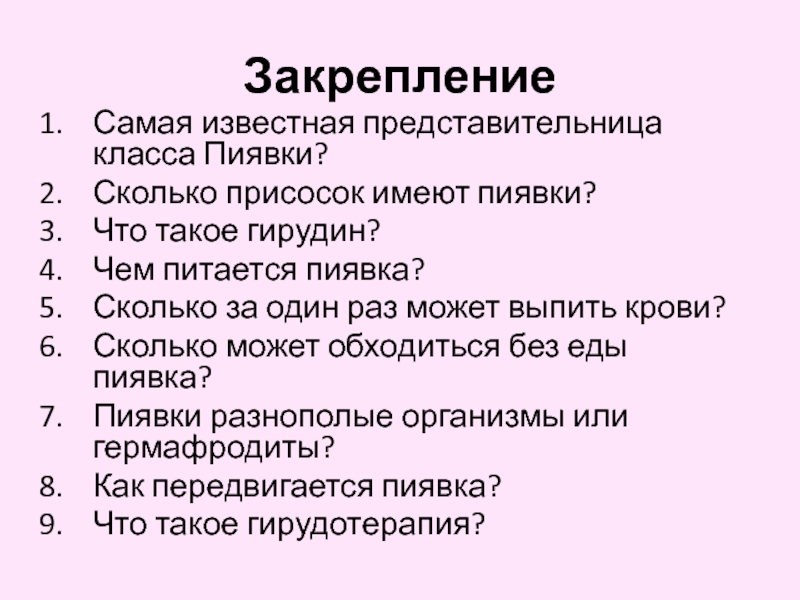 Самая известная представительница класса Пиявки?