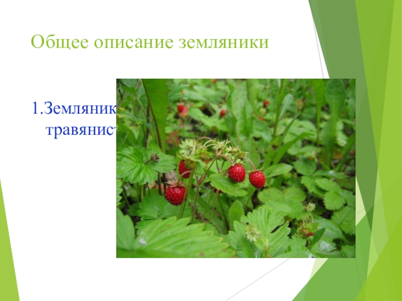 Общее описание земляники1.Земляника – многолетнее травянистое растение.