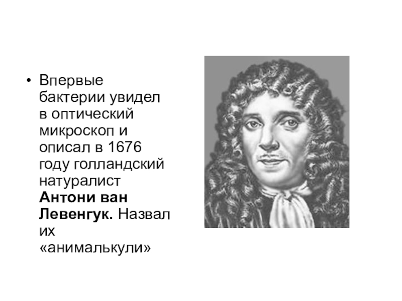 Слайд 2Впервые бактерии увидел в оптический микроскоп и описал в 1676 году