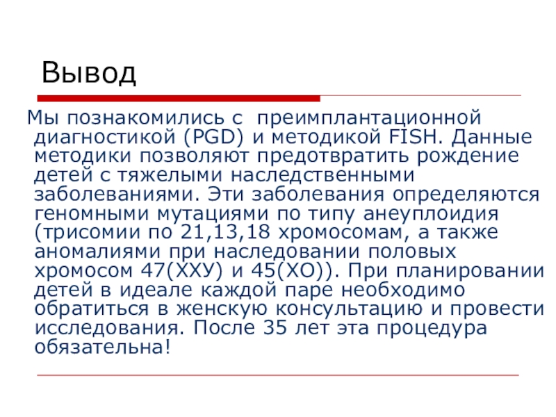 Мы познакомились с преимплантационной диагностикой (PGD) и методикой FISH.