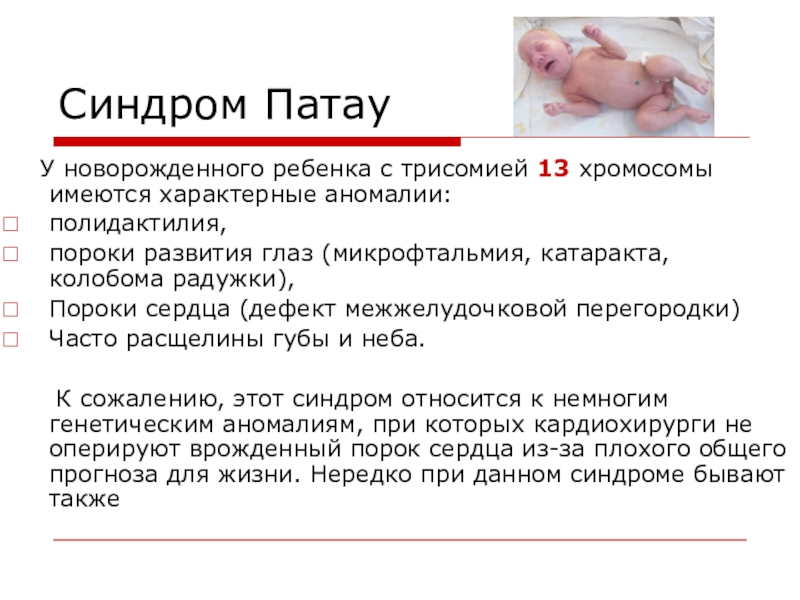 У новорожденного ребенка с трисомией 13 хромосомы имеются