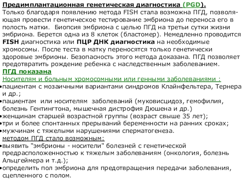 Слайд 20Предимплантационная генетическая диагностика (PGD).