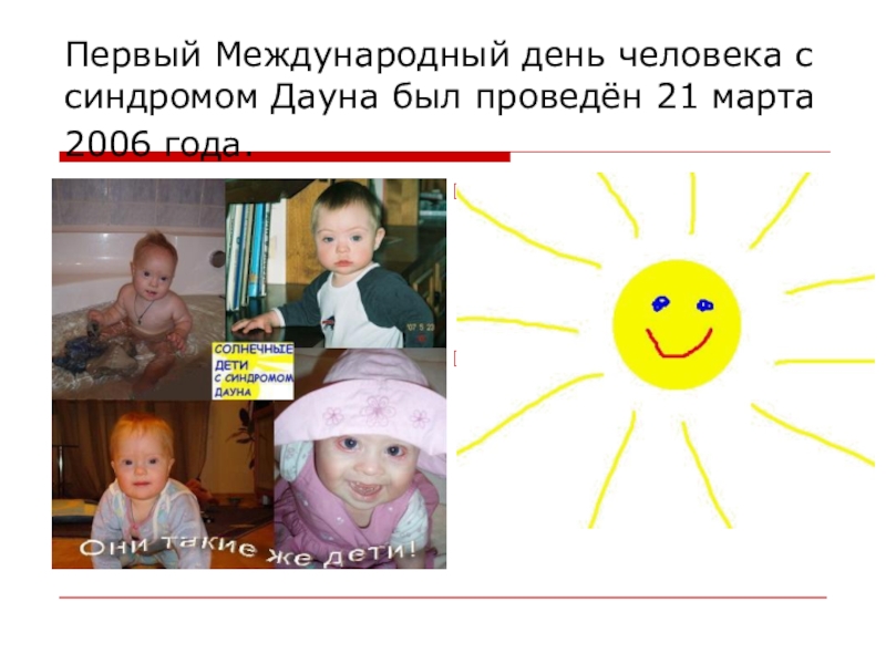 Слайд 12Первый Международный день человека с синдромом Дауна был проведён 21 марта