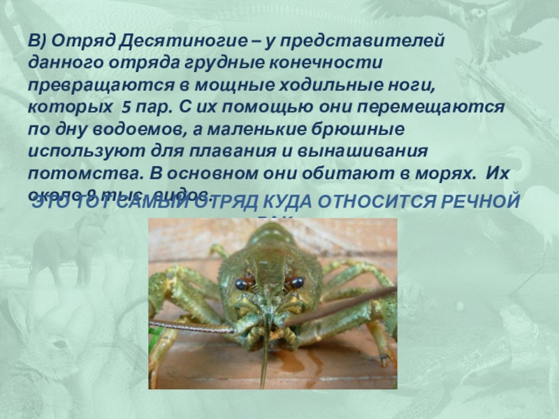 Это тот самый отряд куда относится речной рак.