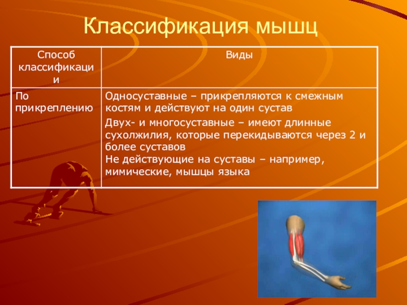 Скелетные мышцыАнтагонистыСгибателиРазгибателиСинергистыСинергистыМышцы,  обеспечивающие  одно движениеМышцы,  обеспечивающие  одно движение