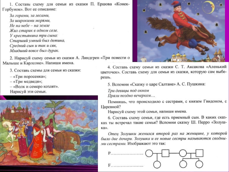 Используя генетическую символику, составить схемы гибридизации сказочных персонажей.