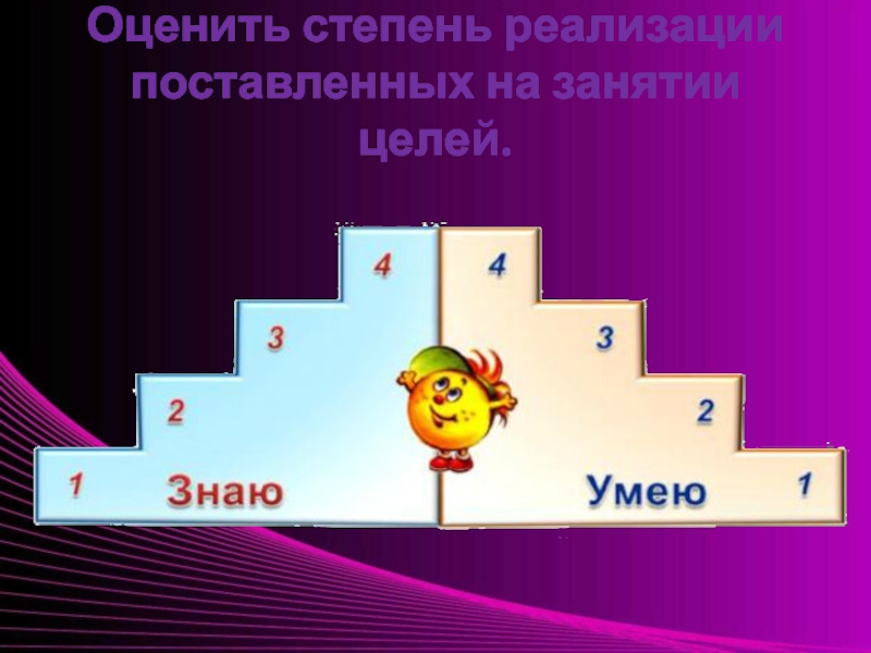 Слайд 12Оценить степень реализации поставленных на занятии целей.