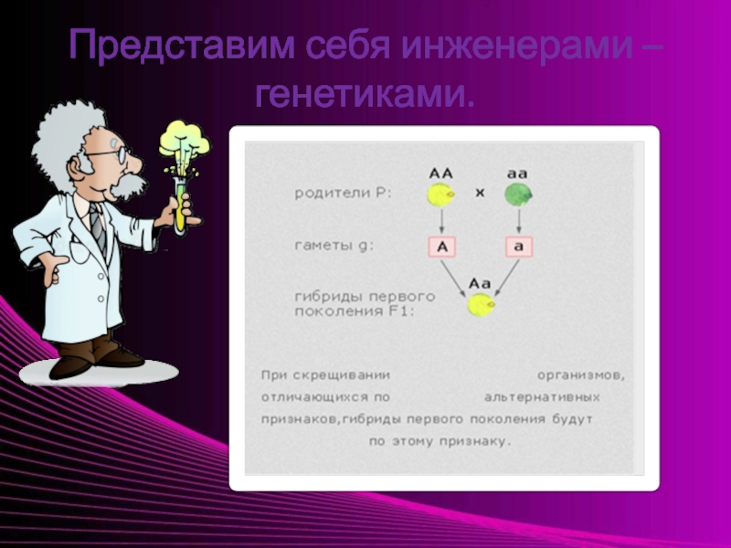 Слайд 10Используя генетическую символику, составить схемы гибридизации сказочных персонажей.