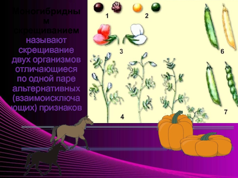 Слайд 6Моногибридным скрещиванием называют скрещивание двух организмов отличающиеся по одной паре альтернативных