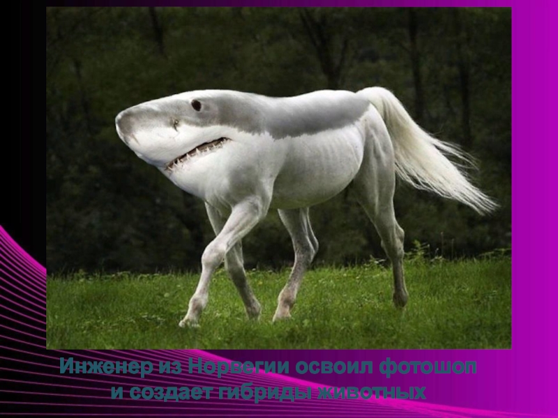 Слайд 1Инженер из Норвегии освоил фотошоп и создает гибриды животных