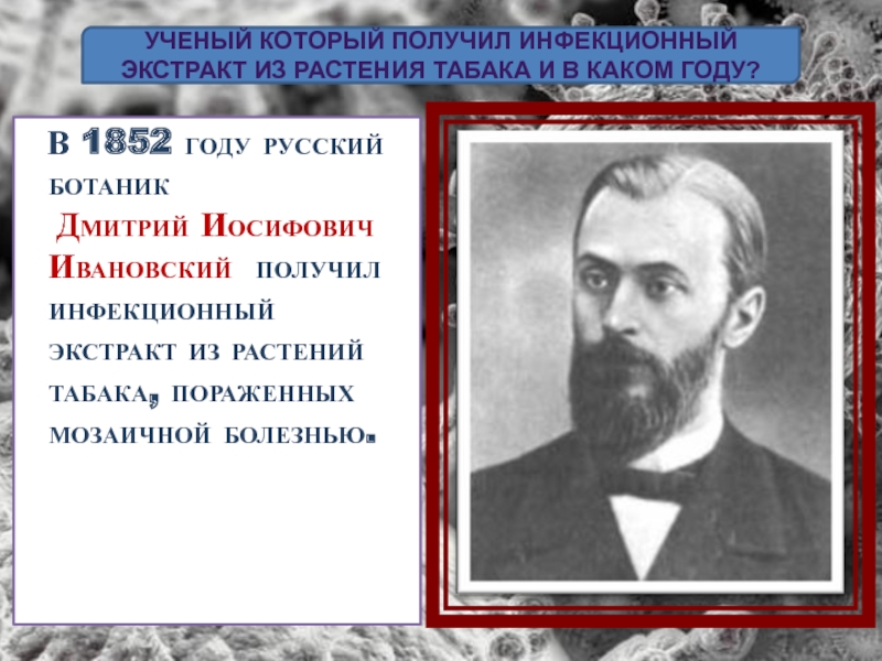 Ученый который получил инфекционный экстракт из растения табака и в каком году?