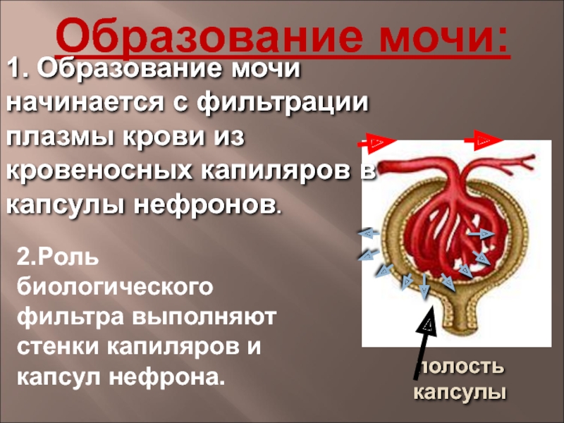 2.Роль биологического фильтра выполняют стенки капиляров и капсул нефрона.