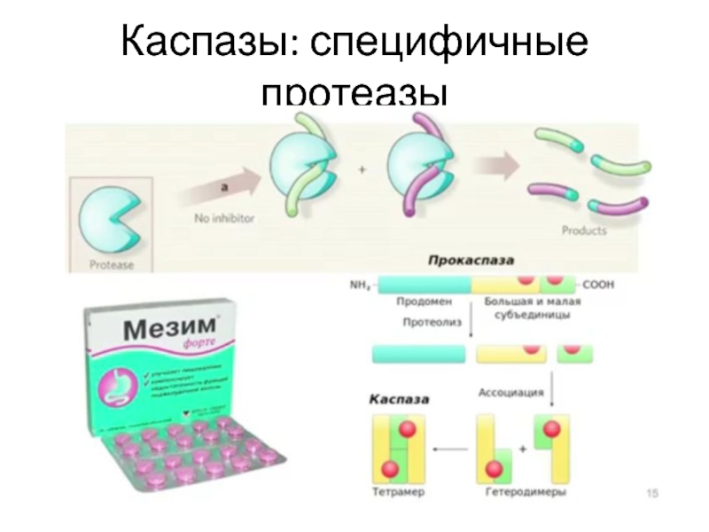 Слайд 15Каспазы: специфичные протеазы