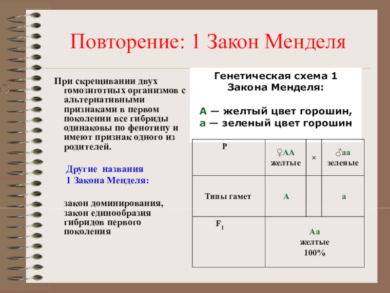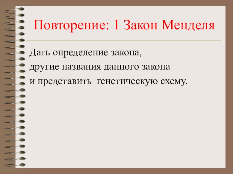 3. Новый материал: 2 Закон Менделя. Формулировка, генетическая запись закона.