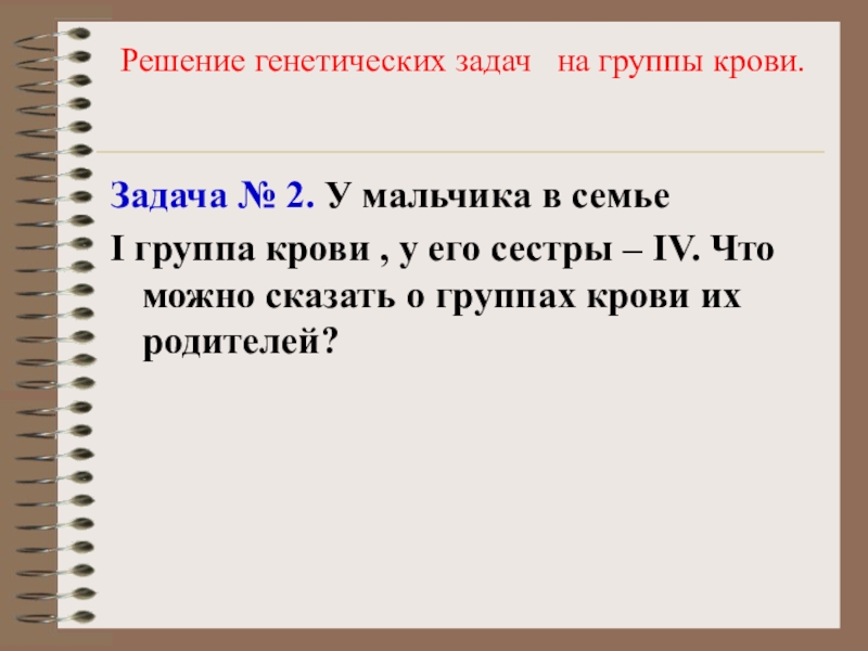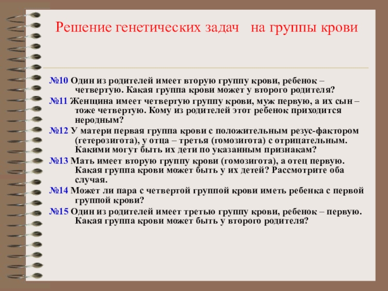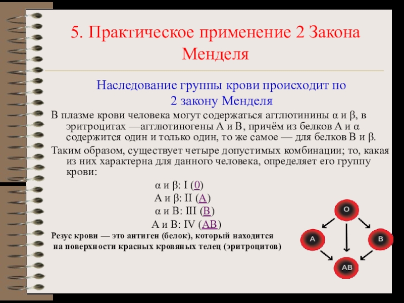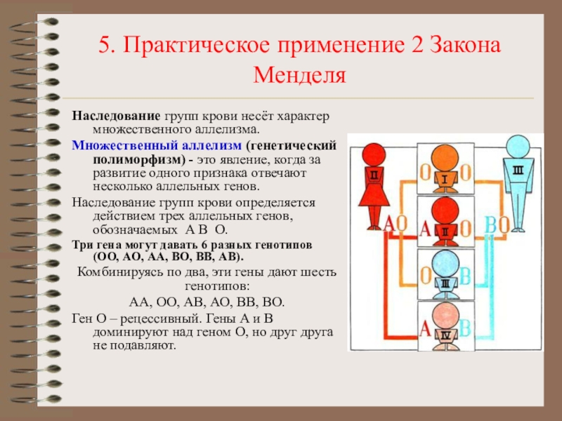 5. Практическое применение 2 Закона Менделя – решение генетических задач на группы крови.