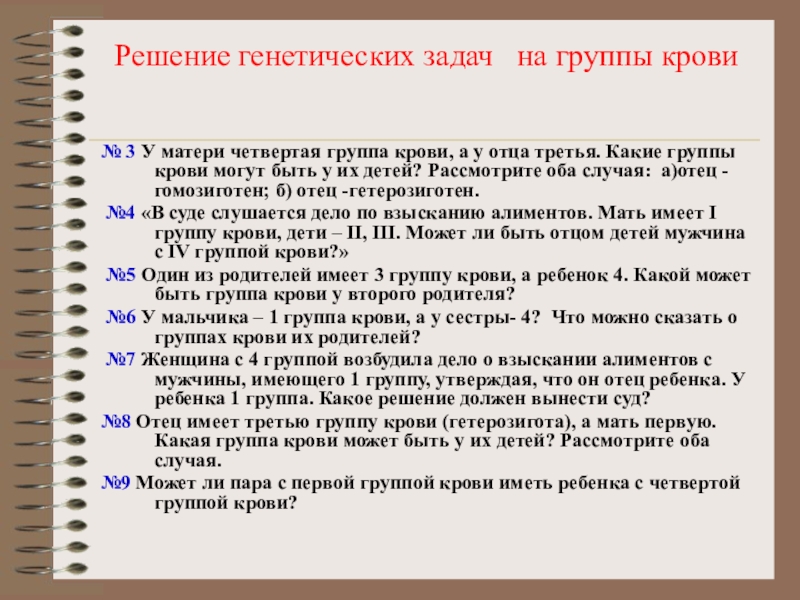 №4 «В суде слушается дело по взысканию алиментов. Мать имеет I группу крови, дети – II, III. Может ли быть отцом детей мужчина с IV группой крови?»