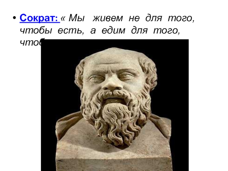 Слайд 3Сократ: « Мы живем не для того, чтобы есть, а