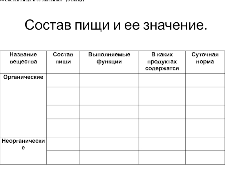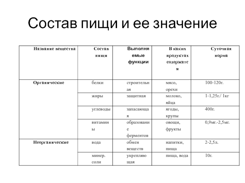 Состав пищи и ее значение.«Состав пищи и ее значение»  (6 слайд)