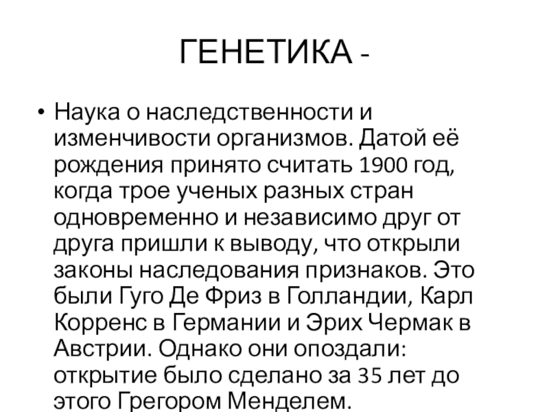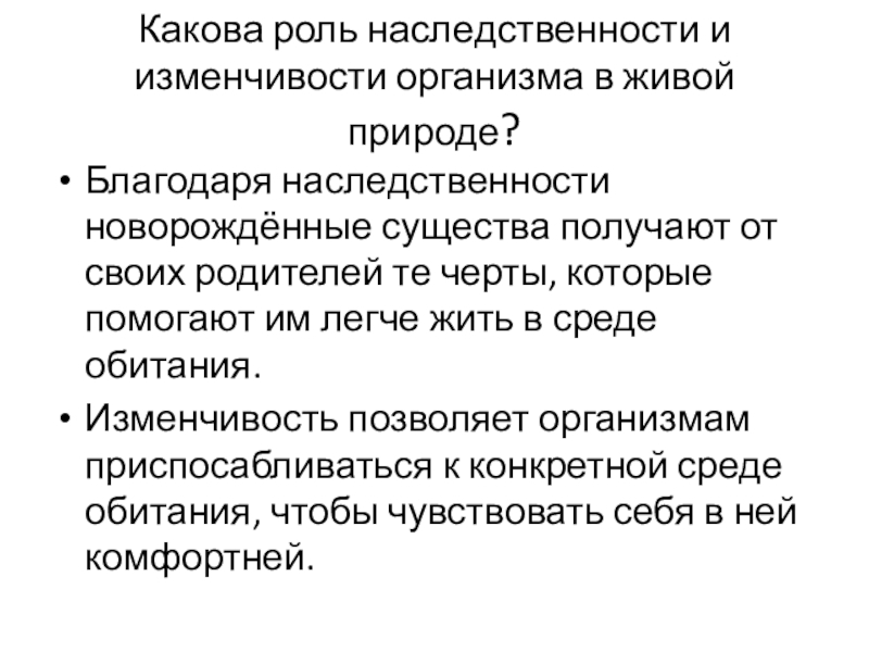 этой науки – наследственностью и изменчивостью; начать формирование основных понятий генетики.