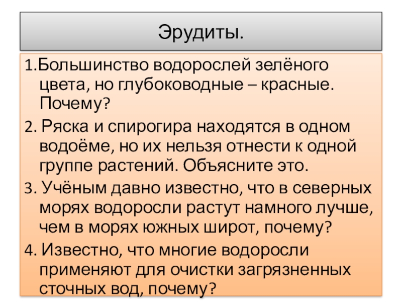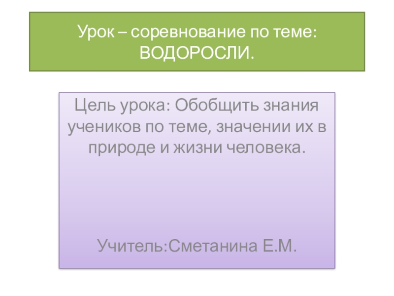 Слайд 1Урок – соревнование по теме: ВОДОРОСЛИ.