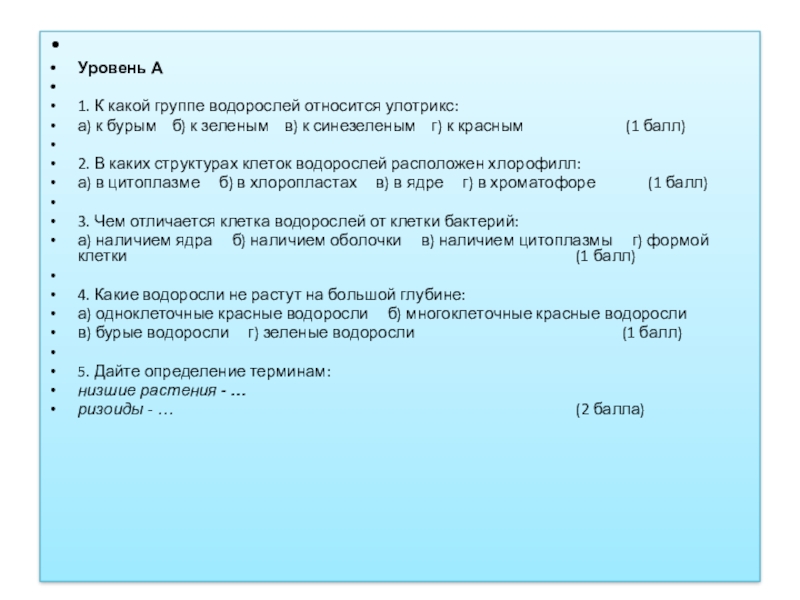 1. К какой группе водорослей относится улотрикс: