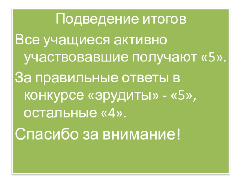 Все учащиеся активно участвовавшие получают «5».