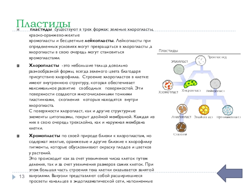 пластиды существуют в трех формах: зеленые хлоропласты, красно-оранжево-желтые