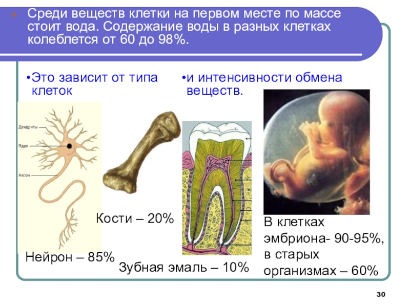 В клетках эмбриона- 90-95%, в старых организмах – 60%