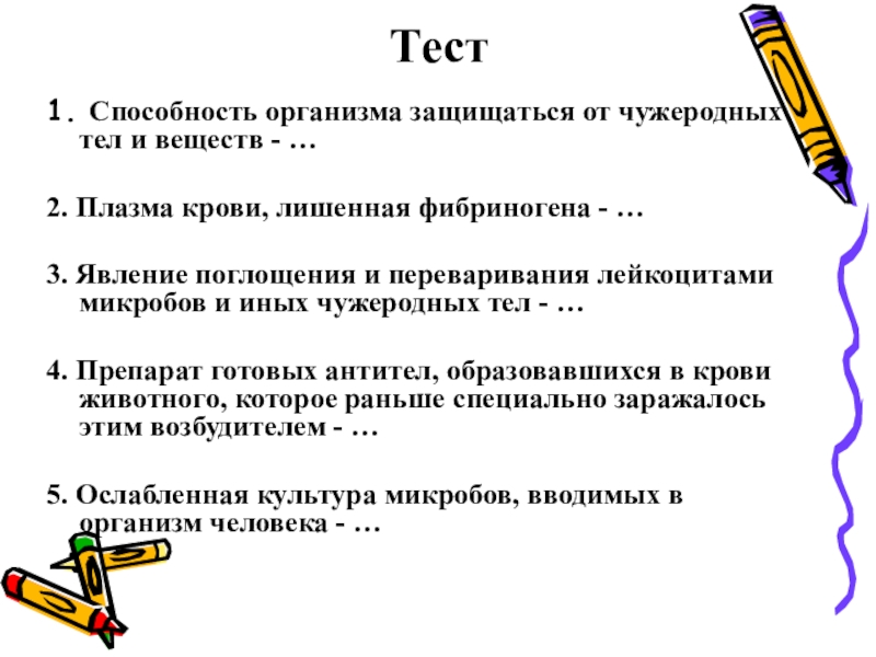 1. Способность организма защищаться от чужеродных тел и веществ - …