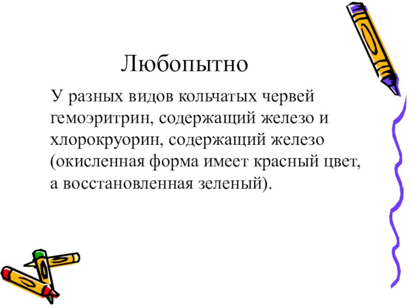 У разных видов кольчатых червей гемоэритрин, содержащий железо и