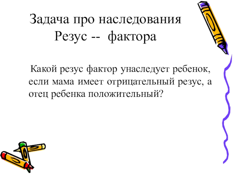 Слайд 21Задача про наследования Резус -- фактора
