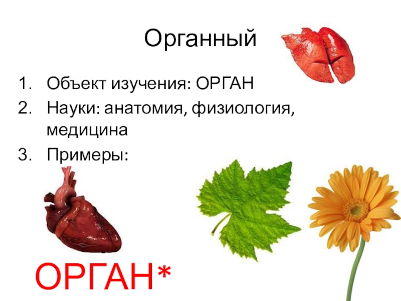 ОрганныйОбъект изучения: ОРГАННауки: анатомия, физиология, медицинаПримеры: ОРГАН*