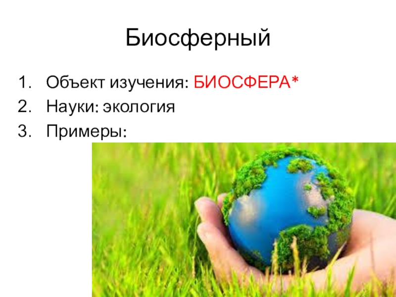 БиосферныйОбъект изучения: БИОСФЕРА*Науки: экологияПримеры: