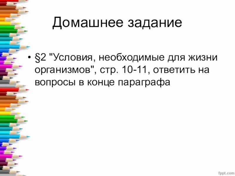 §2 "Условия, необходимые для жизни организмов", стр. 10-11, ответить на