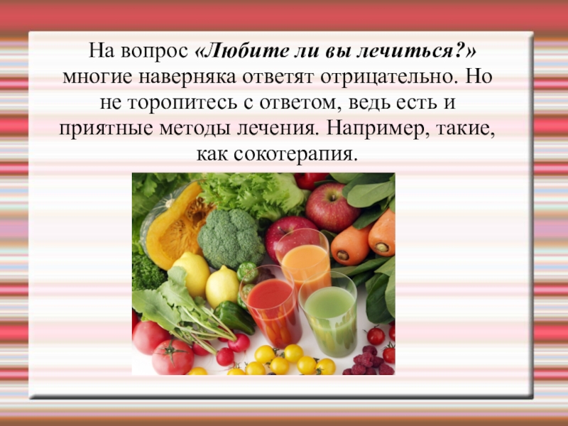 Слайд 2 На вопрос «Любите ли вы лечиться?» многие наверняка