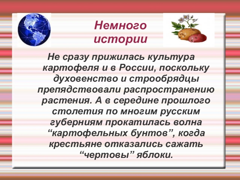 Не сразу прижилась культура картофеля и в России, поскольку духовенство