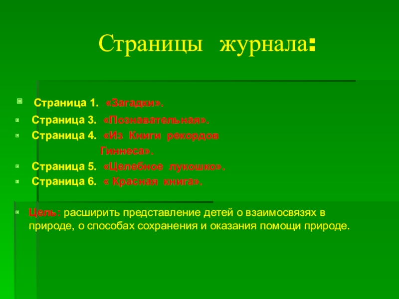 Цель: расширить представление детей о взаимосвязях в природе, о способах сохранения и оказания помощи природе.