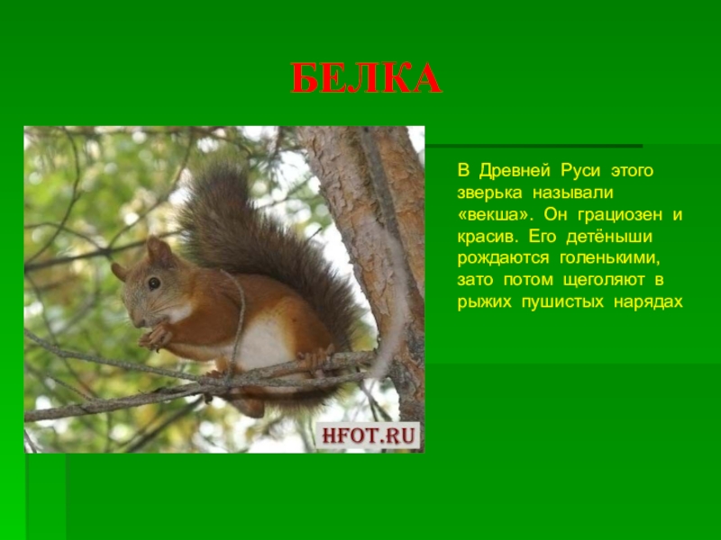 В Древней Руси этого зверька называли «векша». Он грациозен и красив.