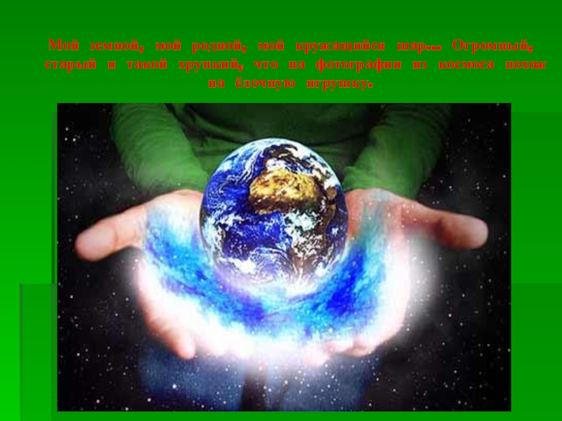 Слайд 3Мой земной, мой родной, мой кружащийся шар… Огромный, старый и такой