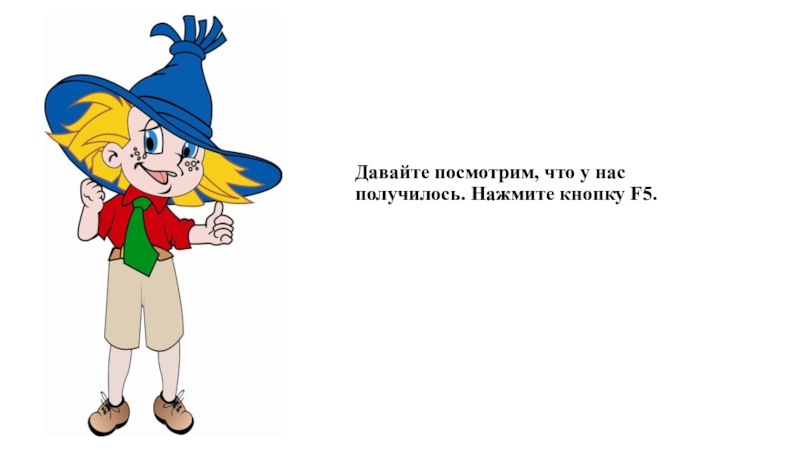 Слайд 6Давайте посмотрим, что у нас получилось. Нажмите кнопку F5.