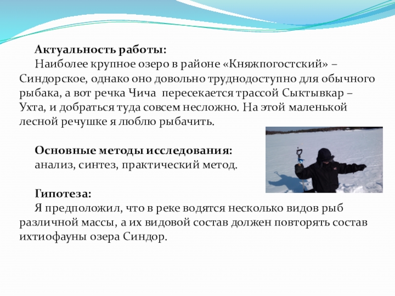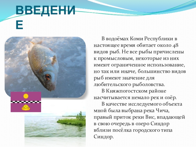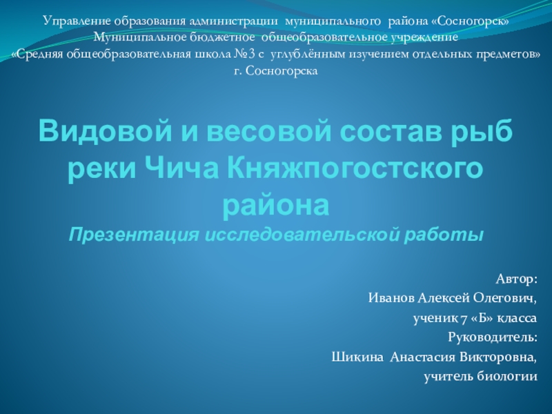 Слайд 1Видовой и весовой состав рыб реки Чича Княжпогостского района