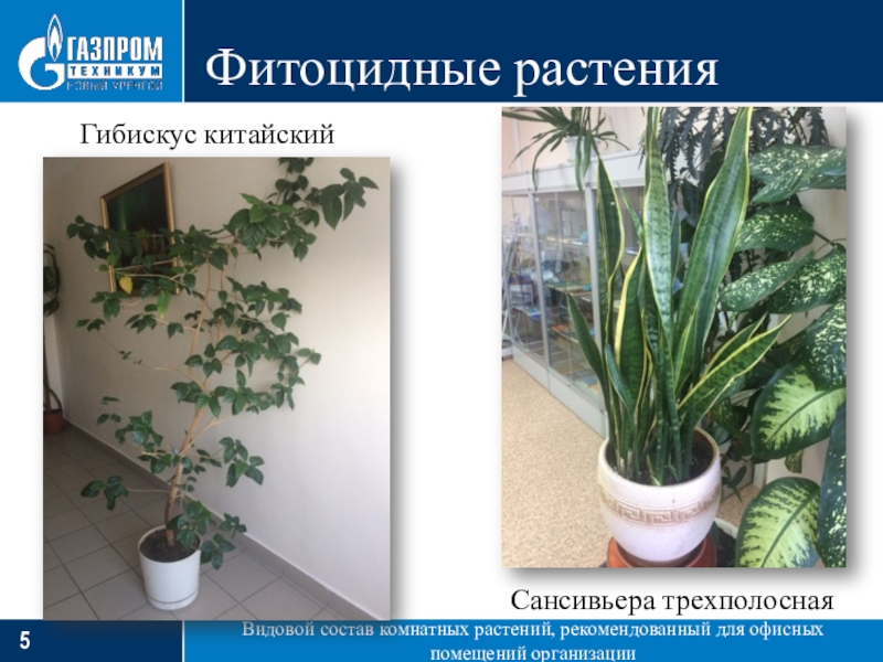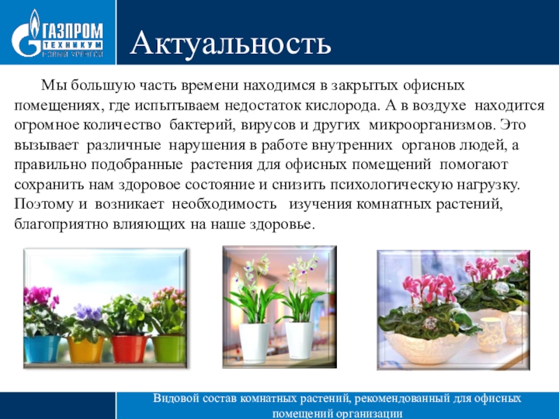 Видовой состав комнатных растений, рекомендованный для офисных помещений организации