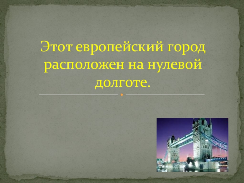 Слайд 4Этот европейский город расположен на нулевой долготе.
