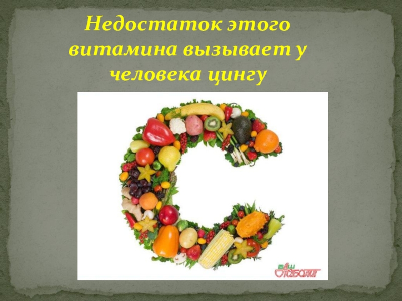 Слайд 13Недостаток этого витамина вызывает у человека цингу