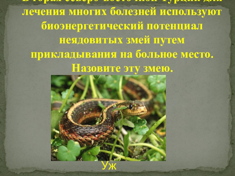 неядовитых змей путем прикладывания на больное место. Назовите эту змею.