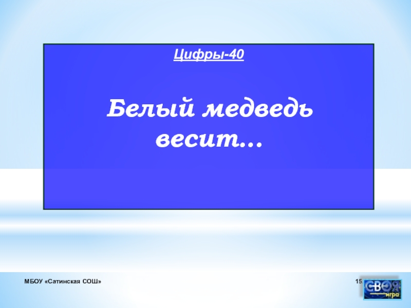 15.05.2016МБОУ «Сатинская СОШ»Цифры-40Белый медведь весит…