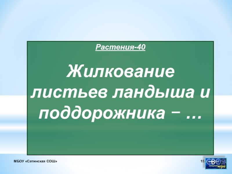 15.05.2016МБОУ «Сатинская СОШ»Растения-40Жилкование листьев ландыша и поддорожника − …