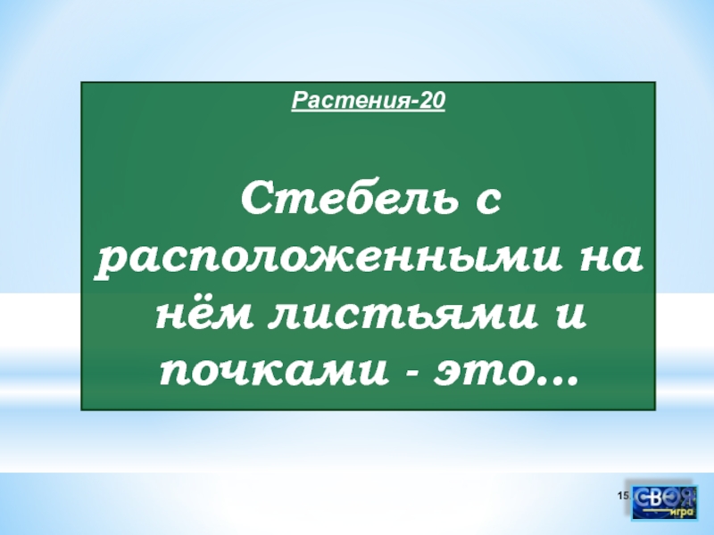 15.05.2016Растения-20Стебель с расположенными на нём листьями и почками - это…